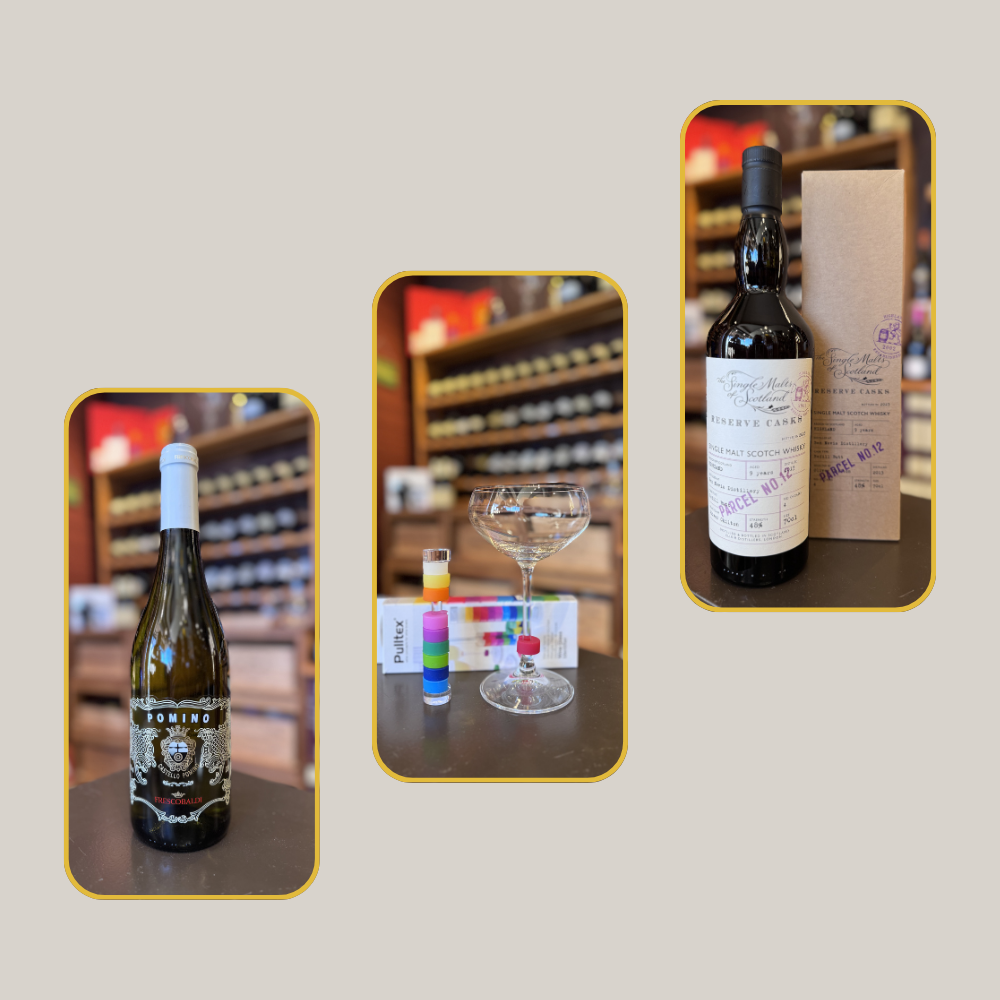 Drie producten, drie momenten. Een frisse witte wijn die al naar lente smaakt, een topwhisky die je niet elke dag ziet passeren, en een accessoire dat op het eerste terras meteen “handig!” wordt.